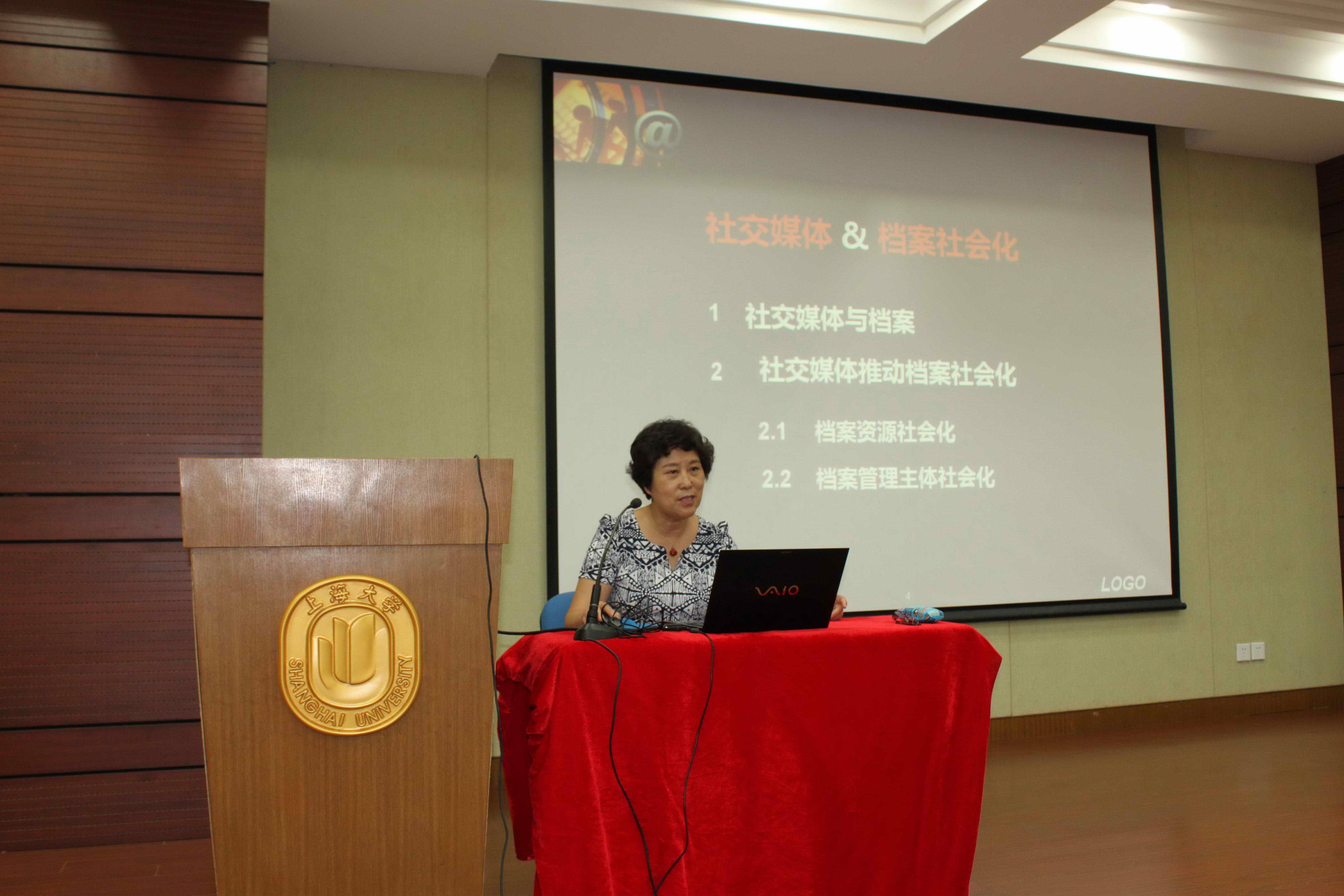 冯惠玲教授的讲座内容分为两部分。第一部分是社交媒体与档案。通过介绍facebook,twitter,微博等这些我们熟知的社交媒体,论述了社交媒体的类型、特征、社会影响,让大家了解到社交媒体的档案属性、档案特点、档案管理以及社交媒体的档案认定;第二部分是社交媒体推动档案社会化。包括档案资源的社会化和档案管理主体的社会化。社交媒体引发了档案工作的新变化,引领了档案工作的新走向,提出了“社会/社区”这个档案工作呼之欲出的第四范式,即参与式档案及辅导员型的档案工作者。同时,介绍了档案馆发展的新阶段,让我们了解档案馆2.0蕴含的新理念。最后,冯惠玲教授还给师生留下一系列猜想,20世纪档案论述的主题是什么呢?档案馆2.0时代管理格局将如何呢?档案范畴、管理主体、管理平台与方式等又该向何处发展呢?
